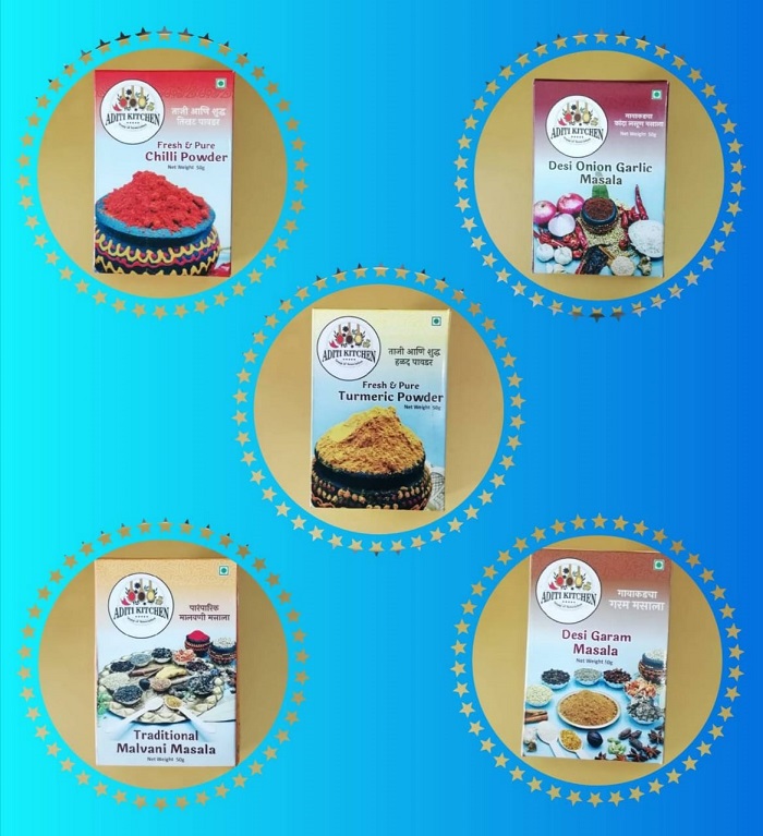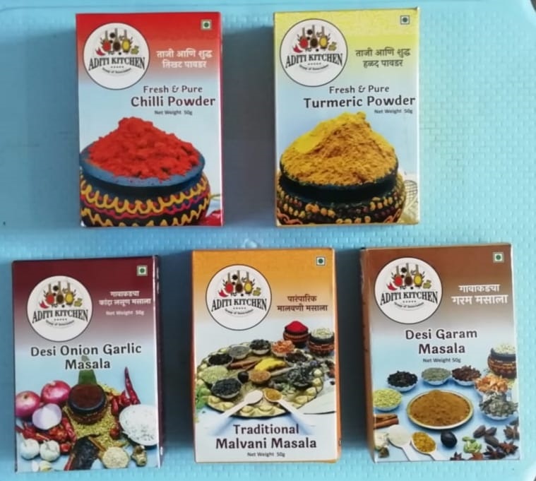 Aditi kitchen group of Association works for community upliftment offers a wide range of spices. This range has Red chilli powder, Turmeric Powder, Garam Masala powder, Chicken Masala powder, Mutton Masala Powder, and other spices. These items are pure and free of any contaminants or additives. All of them have a strong and distinct flavor that complements the food it is used in. Their flavor is neither too overpowering nor bland and can enhance the overall taste of the dish. These spices have a uniform and consistent texture and do not have any lumps or clumps. This ensures that our products mix well with other ingredients and distribute evenly throughout the dish. These products are now finding their usage in houses and restaurants.