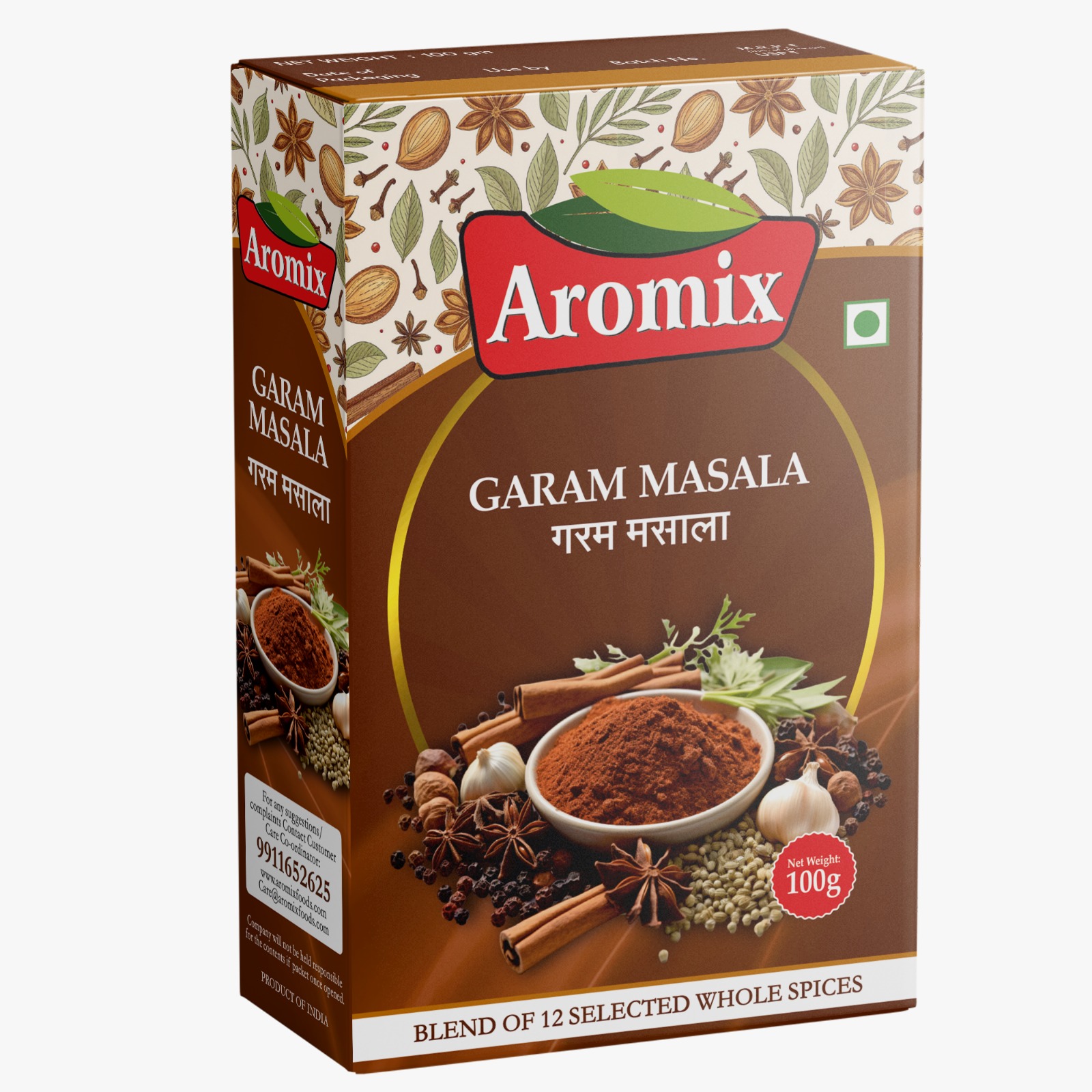 - Aromix Turmeric Powder (Haldi), Pure Haldi, Bright Colour, Natural Curcumin, Freshly Ground, Daily Cooking Essential, No Added Colour, Authentic Taste, Aromix Coriander Powder (Dhaniya), Aromatic Dhaniya, Fresh Flavour, Coarse & Fine Blend, Natural Taste, Enhances Gravy, Farm-Sourced Coriander, Aromix Red Chilli Powder (Lal Mirch), Rich Colour, Balanced Heat, Premium Dried Chillies, No Artificial Colour, Perfect Spice Level, Bold Flavour, Aromix Garam Masala, 12 Hand-Selected Spices, Authentic Indian Blend, Strong Aroma, Traditional Recipe, Finishing Masala, Premium Taste