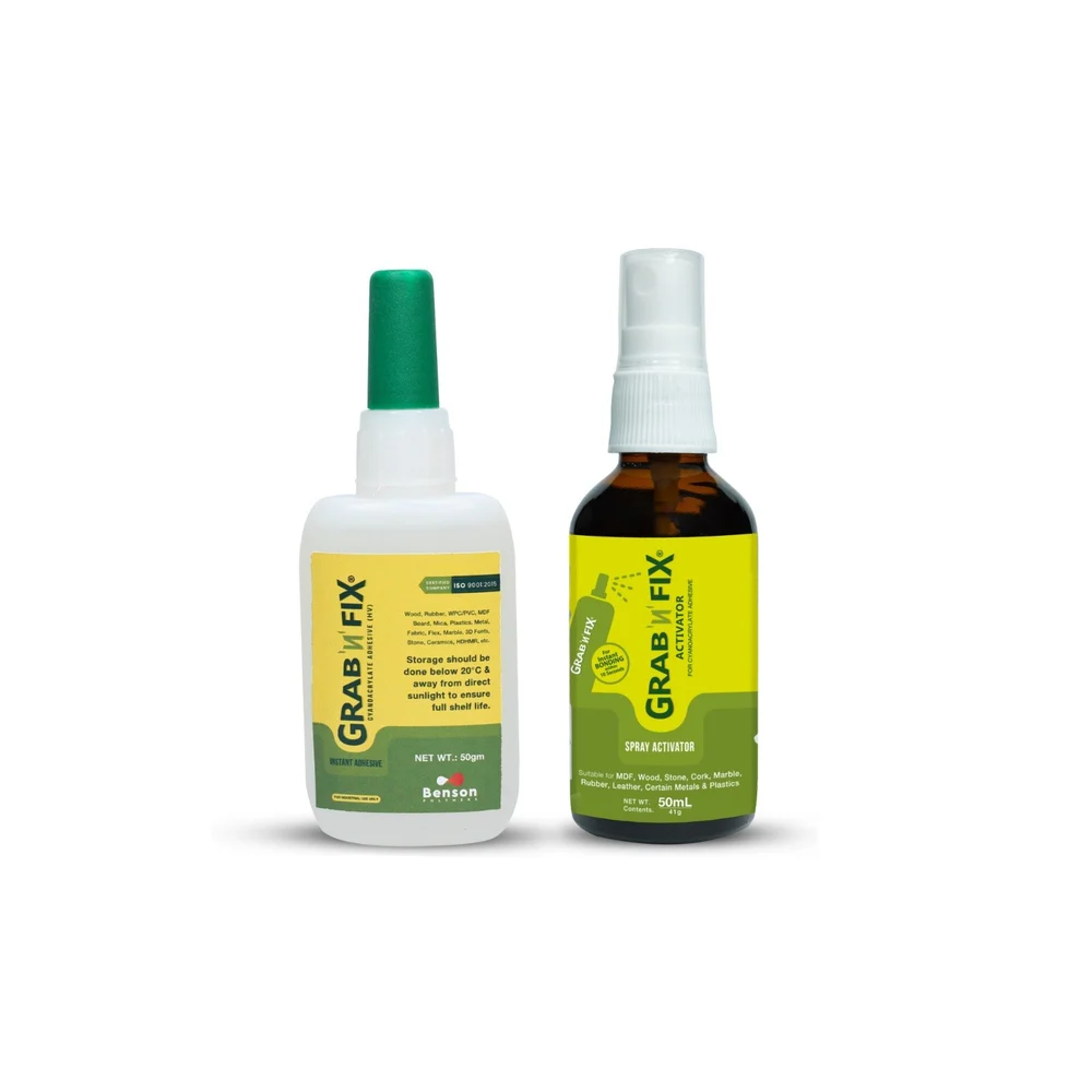 One of the most trusted name in the adhesive industry, Benson Polymers limited is a leading manufacturer and exporter of wide range of Industrial Adhesives, Cyanoacrylate Adhesives with wide range of grades like ethyl cyanoacrylate, methyl cyanoacrylate, methoxyethyl cyanoacrylate, butyl cyanoacrylate, Octyl cyanoacrylate with various physical properties like Gel,high viscosity, medium viscosity, low viscosity grades, single component double component to cure fast, slow cure, non-blooming, flexible CA glue, noodour. Packed in variety of packings like 20 kg, 250 gram, 50 gram, 20 gram, 15gram, 12 gram, 10 gram, 3 gram, 2 gram, half gram etc.Usage in flex, automobile, shoes, cosmetic, electronic, wooden applications like wood sealant and instant wood glue, PVC Door & Window, Stone & Marble bonding etc .