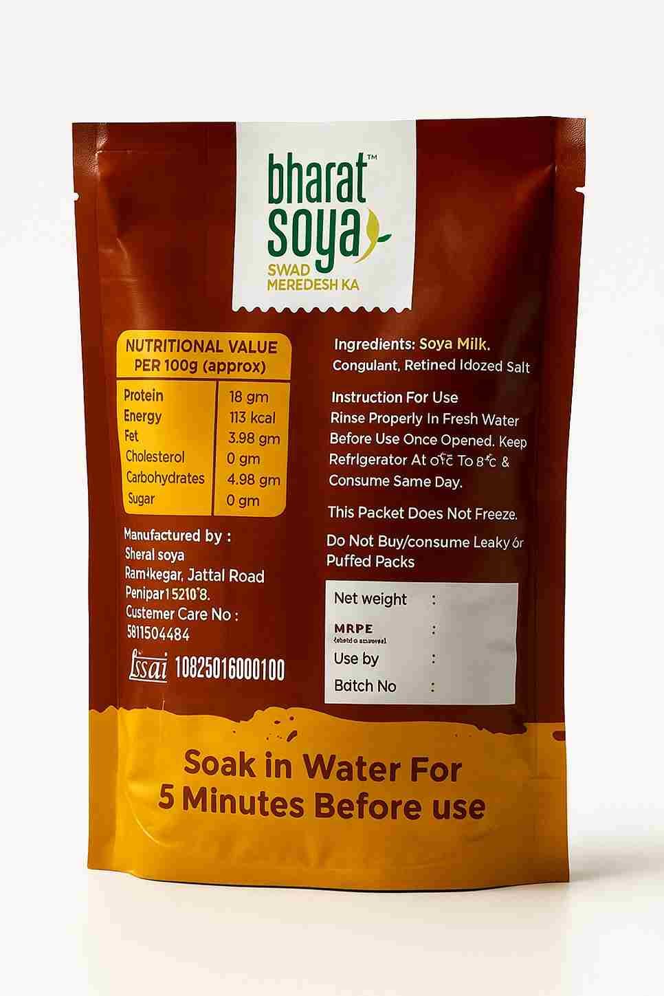 Established in 2025, BHARAT SOYA is a health-focused food brand based in Panipat, Haryana, India, dedicated to delivering high-quality, fresh, and tasty tofu and soy-based products. Our vision is to make plant-based protein accessible to every Indian household. Operating under our brand name, BHARAT SOYA, we are committed to our tagline, “Swad Mere Desh Ka”. We ensure that our tofu is freshly produced daily, hygienically vacuum-packed, and made with premium quality soybeans. Our mission is to provide a healthy, protein-rich alternative to paneer for both households and the food service industry, while also supporting local retailers and distributors with profitable margins and strong brand backing.