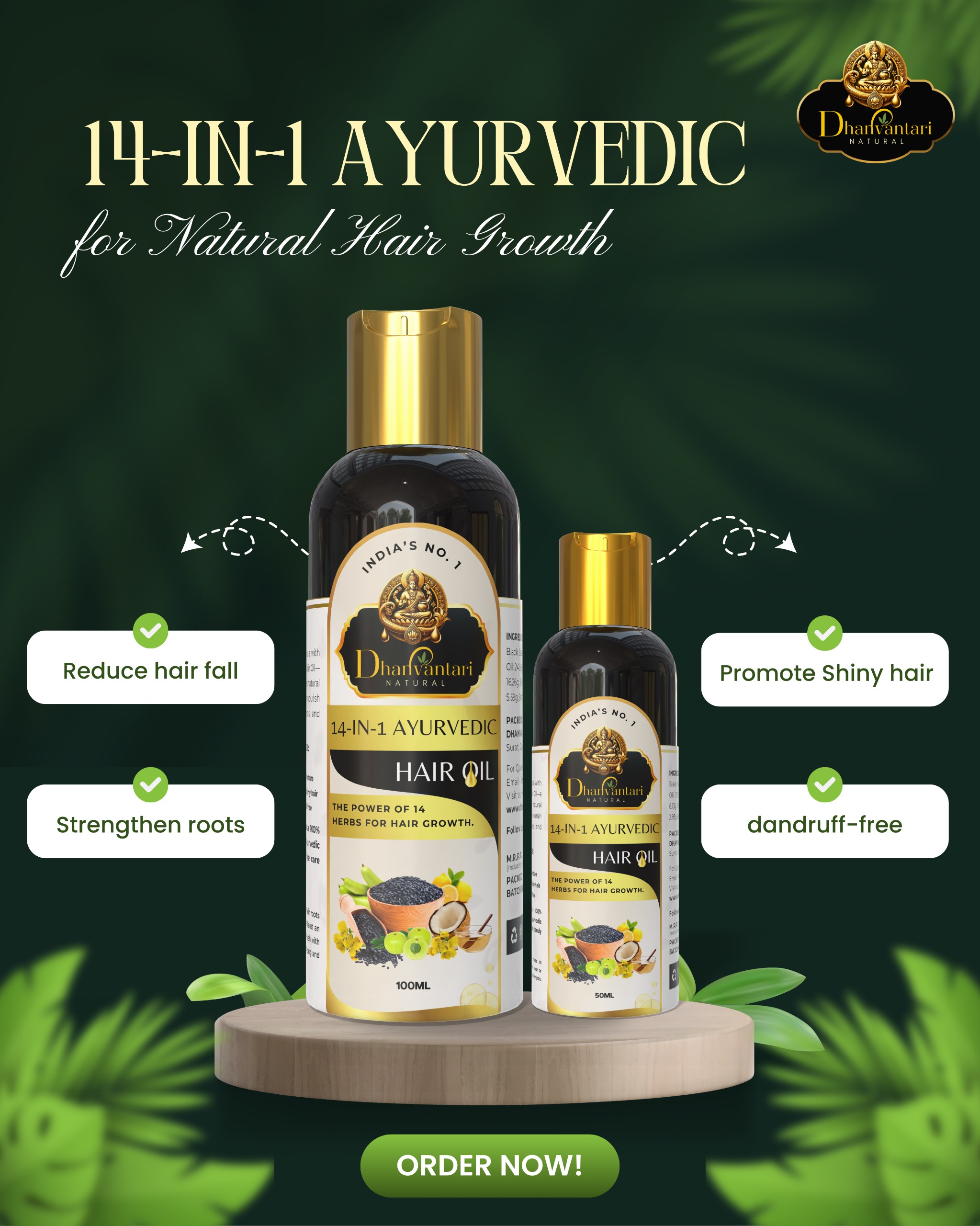 Our goal is to make Dhanvantari Natural a household name in the Indian wellness space by offering effective, natural alternatives to commercial hair care products. By combining traditional knowledge with modern quality standards, we ensure our products are safe, potent, and environmentally friendly. We are proud of our 100% Ayurvedic formulations, free from harmful chemicals, parabens, and sulphates. Now is the perfect time to join our network and tap into the booming Ayurvedic wellness industry.