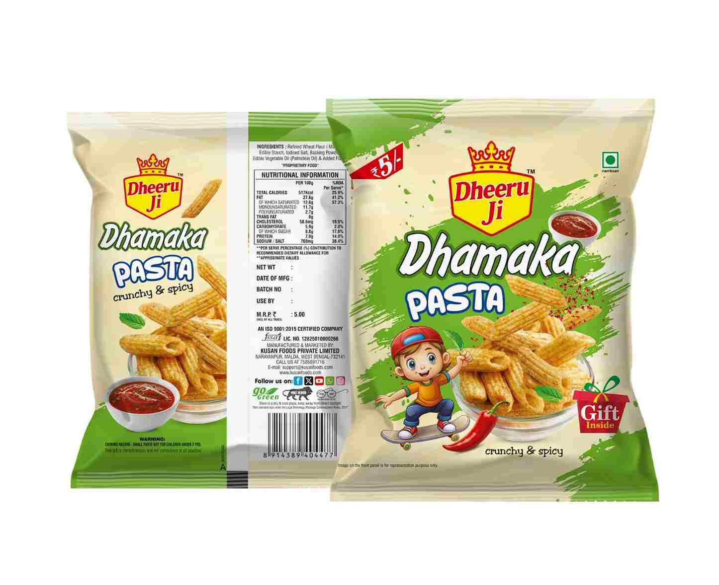 Established in 2025, Kusan foods private limited is a dedicated manufacturer based in Malda, West Bengal, India, specializing in a variety of delicious and affordable snacks. Operating under the brand name Dheeru Ji, we offer a range of products including Fryums, Namkeen, Snacks, and Kids’ Favourite Snacks. Our products are known for their unique flavors, excellent taste, and premium packaging. We maintain top-notch quality by using refined wheat flour, iodised salt, starch, and pure palmolein oil, ensuring both taste and safety for our consumers.