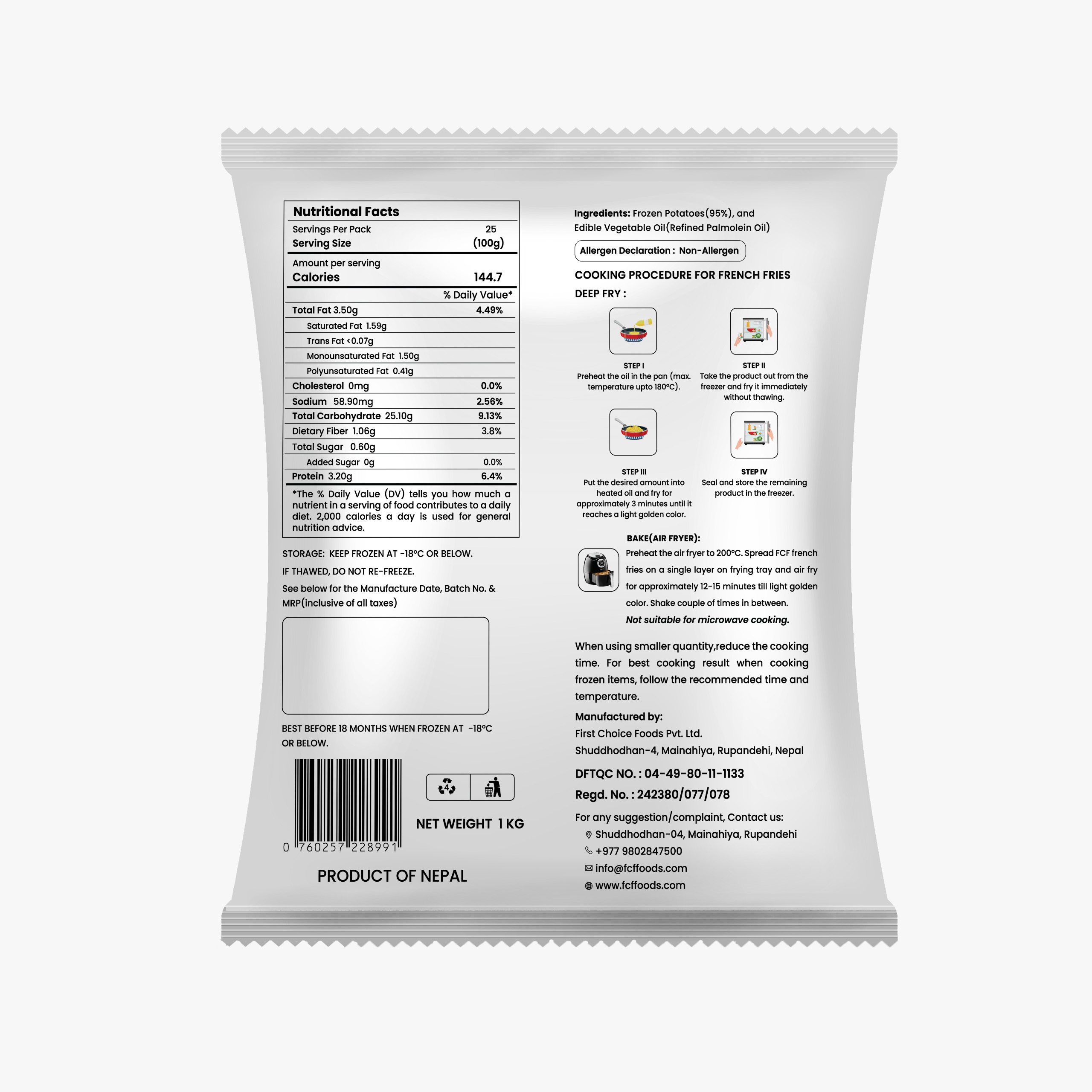 First Choice Foods Pvt. Ltd., established in 2019 A.D and located in Suddhodhan-04, Mainahiya, Rupandehi, Nepal, is a leading potato processing company focused on producing premium-quality French fries for international markets. Utilizing advanced European technology, we ensure top-tier quality, offering a variety of French fries with superior taste, crispiness, and texture.
