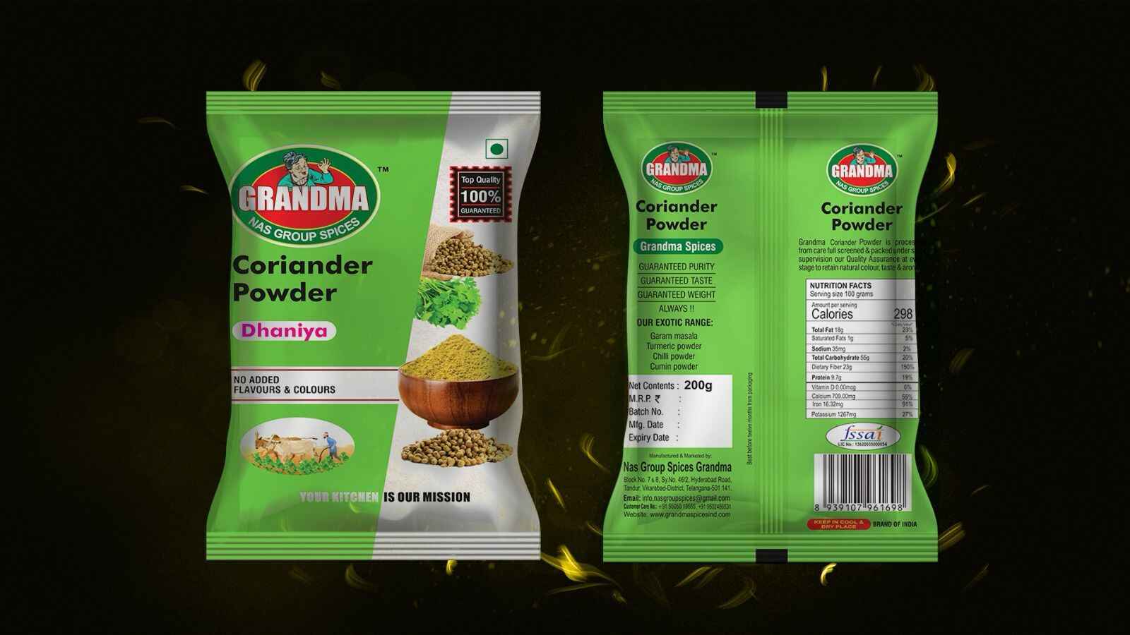 NAS Group Spices Grandma, under the renowned brand name GRANDMA, is a fast-growing Indian spice manufacturing company established in 2020. Headquartered in Vikarabad, Telangana, the company is committed to delivering the authentic taste of traditional Indian spices across households. With a vision to bring the warmth and purity of “Grandma’s kitchen” to every meal, we manufacture a premium range of Powder Spices, Blended Spices, and Whole Spices using high-quality raw ingredients and time-honored processes. Our spices are carefully processed and packed to retain maximum freshness, aroma, and nutritional value.