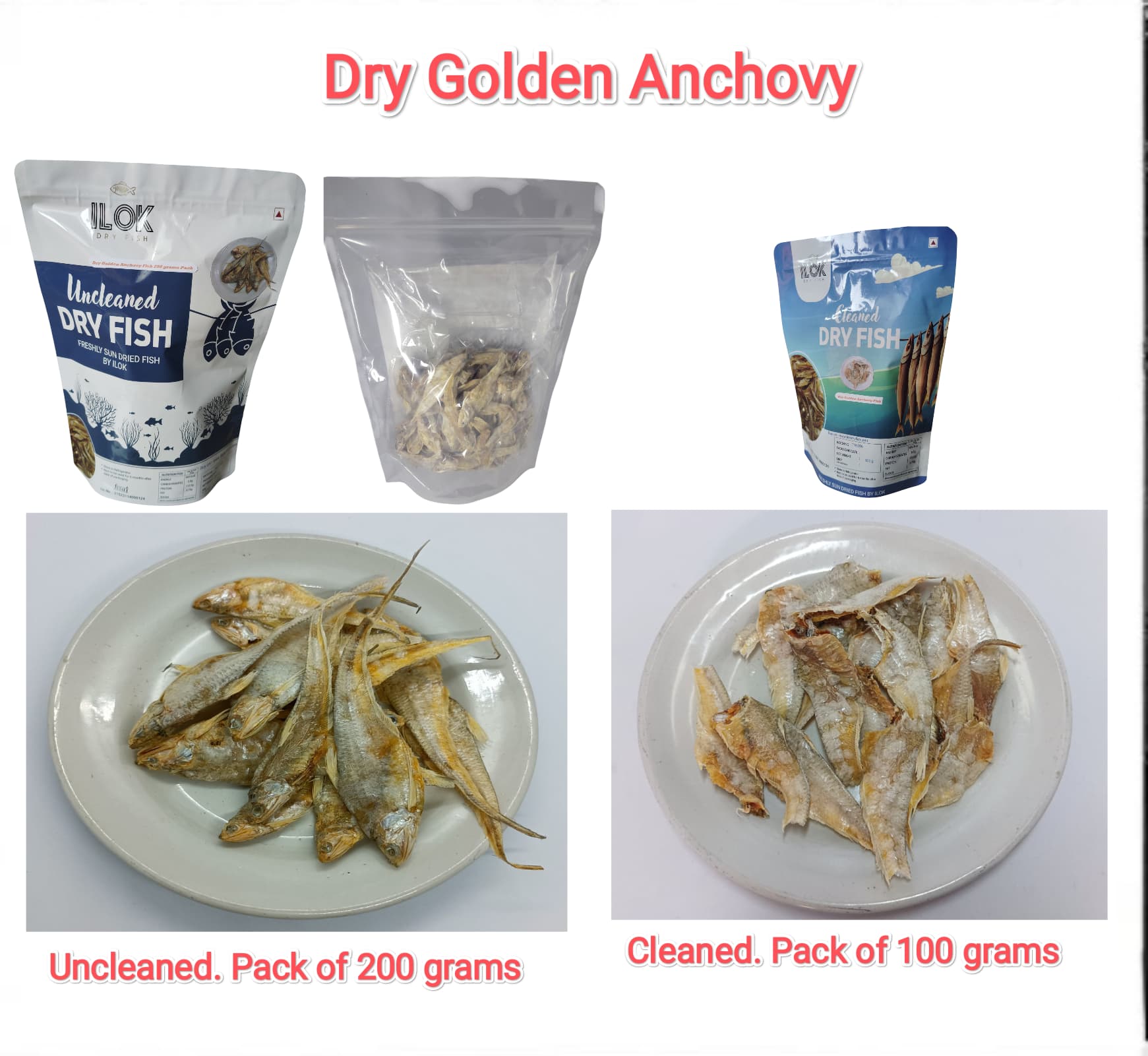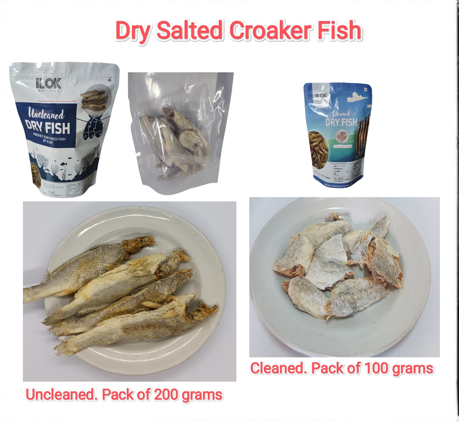 - Dry Fish, Cleaned Dry Fish, Dry Prawns, Dry shrimps, Dry Bombay Ducks, Dry Ribbon Fish, Dry Salted Mackarel Fish, Dry Golden Anchovy, Dry White baits fish, Dry Salted Croaker Fish, ILOK Dry Fish, Sun Dried Fish