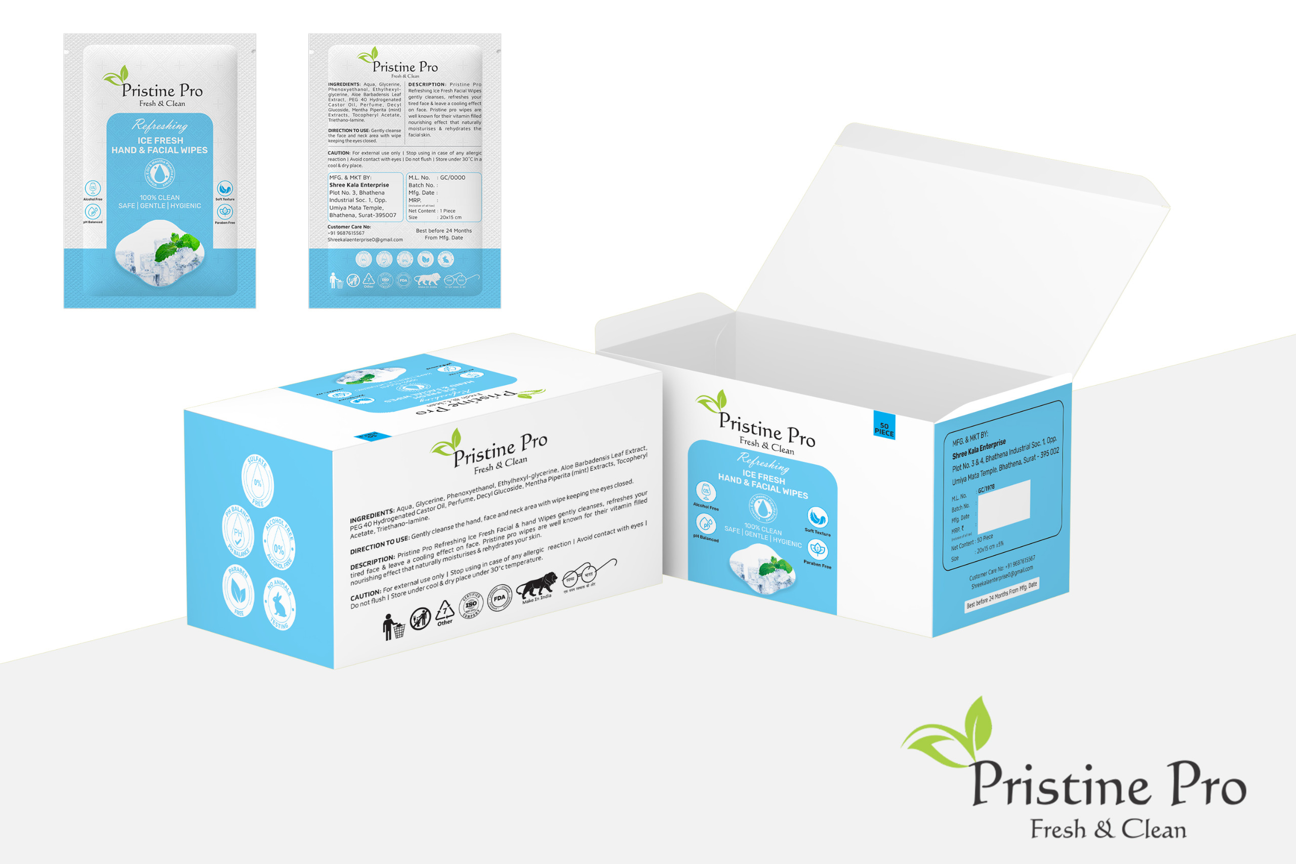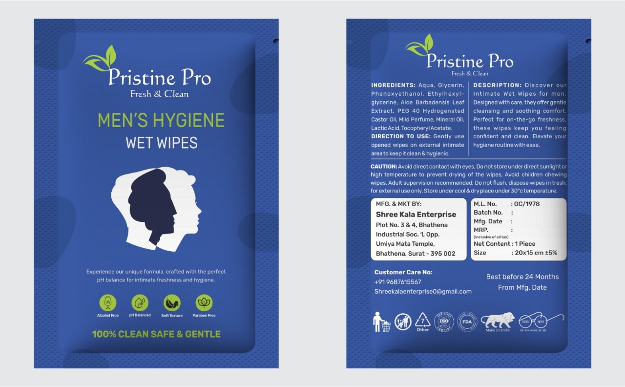 Established in 2022, Shree Kala Enterprise is a fast-growing manufacturer based in Surat, Gujarat, India, operating under its premium hygiene brand PRISTINE PRO. The company was founded with the vision of delivering high-quality, safe, and convenient hygiene solutions for modern lifestyles. With increasing awareness about personal hygiene and sanitation, Shree Kala Enterprise focuses on producing reliable and affordable wipes that meet everyday personal and professional needs. Our manufacturing practices are driven by innovation, strict quality control, and compliance with hygiene standards to ensure superior products for our customers.
