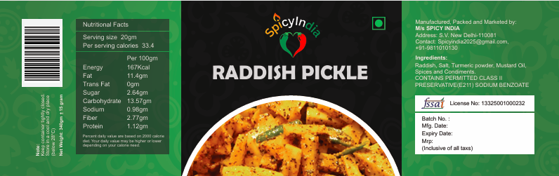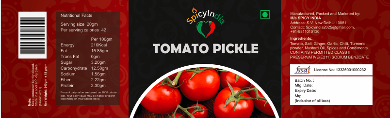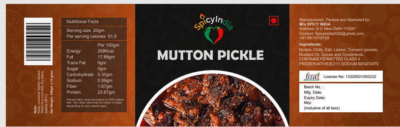 Established in 2025, SPICY INDIA is a dynamic and quality-focused manufacturer based in Delhi, India, dedicated to preserving and promoting authentic Indian and ethnic pickle traditions. Operating under its own brand name SPICY INDIA, the company was founded with the vision of delivering rich, bold, and traditional flavors crafted using time-honored recipes and modern hygienic processing methods. By combining traditional culinary knowledge with contemporary food manufacturing practices, SPICY INDIA ensures consistent taste, long shelf life, and uncompromised quality in every product. Our commitment to purity, freshness, and authenticity forms the backbone of our brand philosophy.