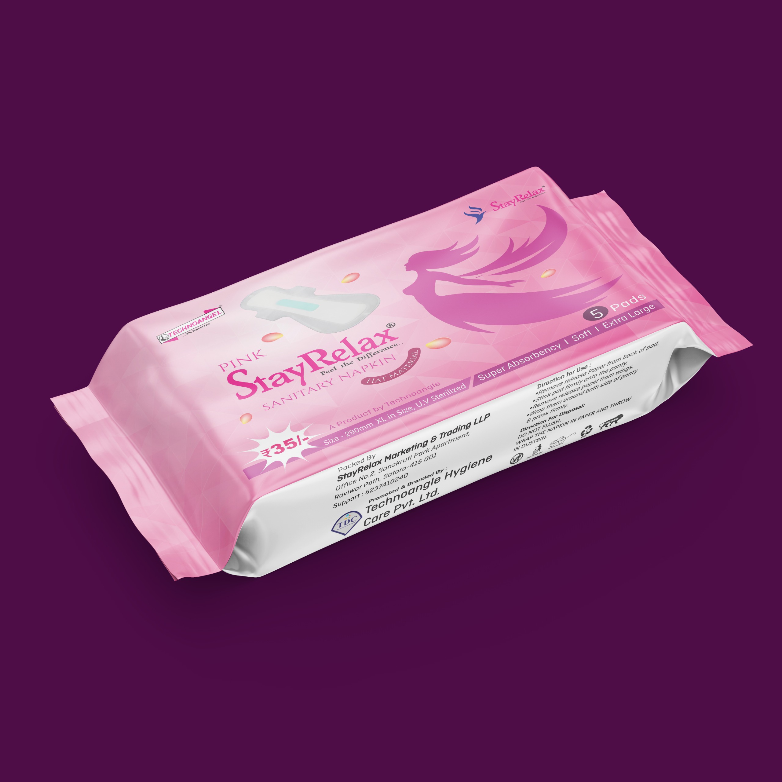 Established in 2017, STAYRELAX MARKETING AND PACKAGING is a dedicated manufacturer specializing in essential feminine hygiene products. Operating under the brand name STAYRELAX, the company is committed to promoting women's health and comfort by offering a wide and varied range of high-quality Sanitary Pads and Panty Liners. We understand that menstruation is a natural part of a woman's life, and our products are designed with features like an anti-bacterial sheet to prevent bacteria and unpleasant odor, ensuring women can breeze through these days every month with confidence and ease, without worrying about leakage and stains.