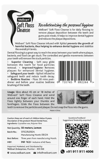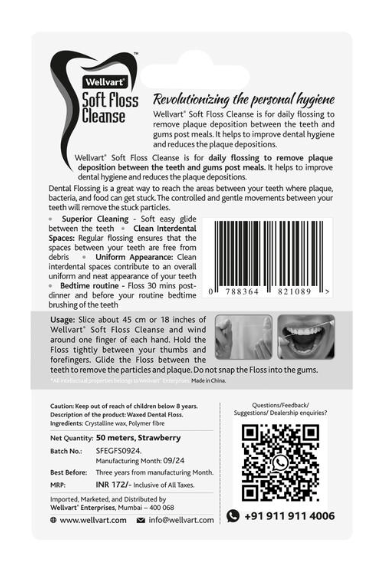 The business nature of Wellvart Enterprises is manufacturing, specializing in a comprehensive range of oral hygiene products. Our offered product portfolio includes dental floss, floss for teeth, oral floss, dental floss thread, and related oral care solutions designed for daily use and preventive dental care. Each product is developed using quality-tested materials, ensuring comfort, durability, and superior cleaning performance. Our brand is positioned to serve pharmacies, dental clinics, supermarkets, wellness stores, and e-commerce platforms, making Wellvart a trusted choice in the oral care segment.